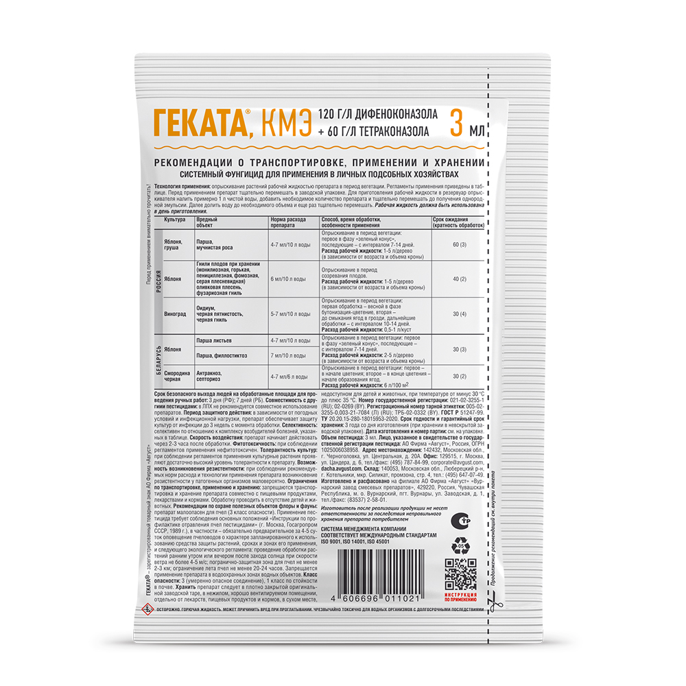 Геката - комбинированный препарат от комплекса болезней на плодовых, ягодных культурах и винограде. Инфекции сада, гнили портят плоды, сокращают срок хранения, снижают урожайность и могут даже привести к гибели растения. Зараженные яблоки и груши выделяют токсины, вредные для человека. Геката содержит уникальное сочетание действующих веществ, что позволяет эффективно лечить и защищать от болезней, не вызывая привыкания у возбудителей инфекции. Похожие товары