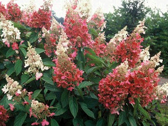 Кустарник высотой и шириной до 2 м, с широкоокруглой кроной, с сильными, жесткими, красно-бурыми стеблями, держащими цветочные метелки вертикально не сгибаясь под их тяжестью. Цветет обильно с июля до августа двухцветными соцветиями длинной 30-40 см, конусовидной формы с широким основанием, вначале белыми, далее начиная с основания метелки быстро приобретают яркий, интенсивный пурпурно-розовый оттенок. Фертильных цветков гораздо меньше и они скрыты стерильными. Эллиптические, пильчатые, темно-зеленые листья длиной 10-15 см, осенью с красным оттенком. Цветы отлично подходят для срезки и в сухие букеты. На протяжении сезона создает двухцветный эффект. Похожие товары