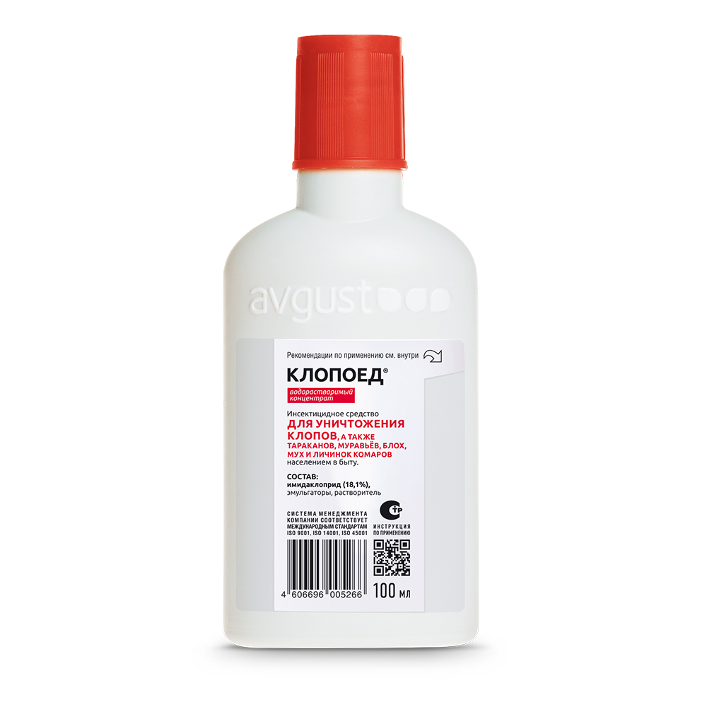 Клопоед – препарат для уничтожения постельных клопов, тараканов, домашних муравьев, блох, мух и личинок комаров. Постельные клопы - это одна из разновидностей насекомых-паразитов, которые обитают в местах пребывания людей или теплокровных животных и питаются их кровью. Появление в жилище таких паразитов является неприятным и опасным для здоровья всей семьи моментом. Клопоед поможет уничтожить полчище вредных насекомых, необходимо обработать раствором препарата места обитания вредителей: щели в стенах, полу и мебели, за плинтусами, подоконники, обратные стороны картин, ковров, места отхождения обоев. Эффект достигается через 2 суток после обработок, а гибель насекомых наступает уже через 2 часа. К тому же ваш дом будет защищен от нападок на срок не менее месяца. Клопоед не имеет сильного запаха и безопасен для теплокровных организмов (при рекомендуемых нормах расхода), но постельное белье им обрабатывать запрещается. Применять Клопоед нужно согласно инструкции (см. вкладку Регламенты применения). Приготовление рабочего раствора производится путём разведения концентрата сначала в небольшом количестве воды, а затем добавления воды до необходимого количества. Рабочий раствор хранению не подлежит, то есть использовать его нужно сразу. Преимущества: Не имеет сильного запаха. Гибель насекомых наступает на 2 день после обработки. Гарантирует длительный (около месяца) защитный эффект. Не вызывает привыкания у насекомых. Срок годности: 4 года Похожие товары