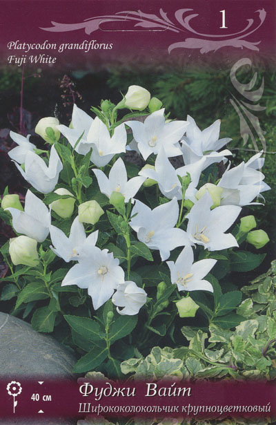 Ширококолокольчик крупноцветковый: многолетник с тонкими стеблями до 60 см высотой. Корни веретеновидные. Листья овально-ланцетные, по краю мелкозубчатые, нижние в прикорневой розетке. Цветки одиночные или в малоцветковой кисти, ширококолокольчатые, с пятью широкими зубцами, до 8 см в диаметре, синие или белые. Есть карликовые и полумахровые сорта. Фуджи Вайт: цветок белый. Месторасположение: предпочитает открытые солнечные места, но выносит и полутень. Почва: умеренно сухая, свежая, рыхлая, богатая питательными веществами. Необходим дренаж. Застоя грунтовых вод растения не переносят. Использование: очень эффектны небольшими группами на газоне, хороши в букетах, срезку производят, когда раскроются все цветки. Похожие товары