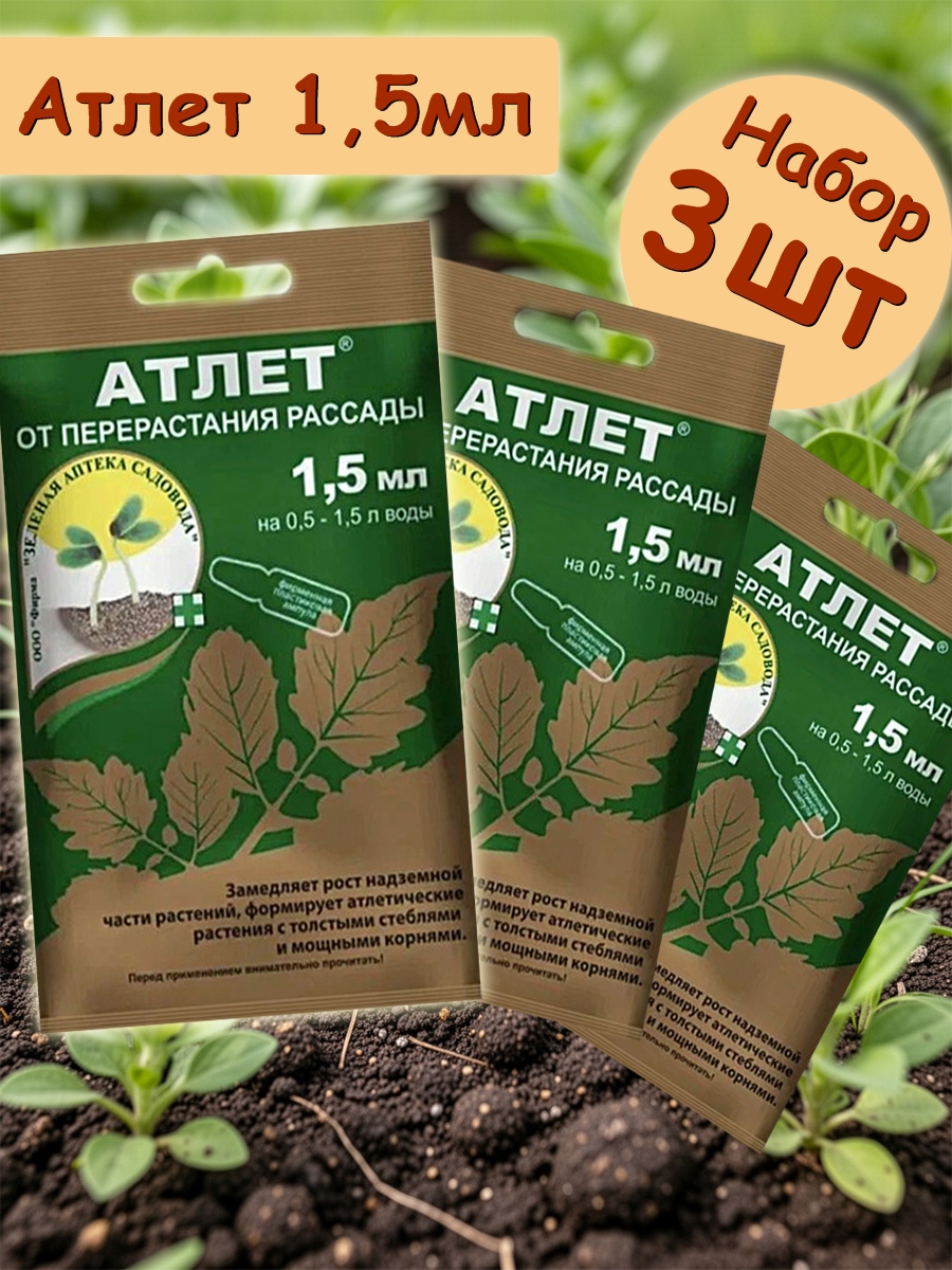 Атлет - незаменимый помощник при выращивании рассады. Препарат сдерживает рост в высоту надземной части растения, при этом способоствует утолщению стебля и значительному росту корней.Рассада не вытягивается даже при низкой освещенности, загущении и высокой температуре! Атлет ускоряет образование первых соцветий и число завязей в них. Обеспечивается выход ранней продукции, и общий урожай увеличивается на 20- 30%. Похожие товары