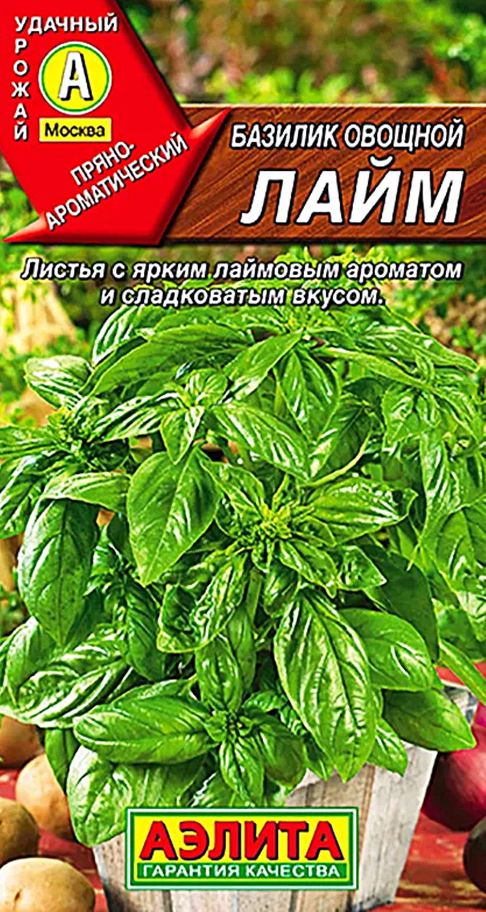 Сорт обладает пикантным сладковатым вкусом и ярким лаймовым ароматом. Раннеспелый, период от полных всходов до начала хозяйственной годности 45-50 дней. Образует разветвленный густой куст высотой 40-50 см. Урожайность зелени 2-3 кг/м2. Листья и молодые побеги используют в домашней кулинарии в свежем и сушеном виде. Зелень хорошо сочетается с овощами, сыром, рыбой, мясом, применяется для ароматизации напитков и при консервировании. Похожие товары