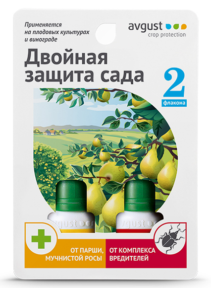 Защита плодовых культур от парши, мучнистой росы и долгоносиков, медяниц, щитовок, листоверток. Новая серия препаратов «Двойная защита» создана специально для комплексной обработки плодовых, ягодных, цветочных и декоративных культур. В каждой упаковке содержатся два наиболее эффективных препарата, один из которых предназначен для борьбы с вредителями, второй – для лечения и профилактики заболеваний растений. «Двойная защита» профессионально защитит ваши растения! Похожие товары