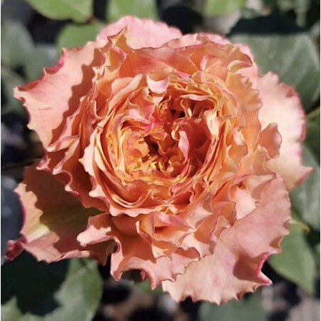 Цветки персиково-розовые, иногда с оранжевыми оттенками и зелёной подложкой. Размер цветка крупный, диаметр — 10–12 см. Тип цветка густомахровый, количество лепестков — 60–70. Расположение цветков одиночное и в соцветиях. Количество цветков на стебле: 1–3. Аромат средний. Куст прямостоячий, с ветвями, направленными вверх. Высота куста 80–100 см, ширина — около 50 см. Листья тёмно-зелёные, блестящие. Цветение обильное, повторяется до середины октября. Похожие товары
