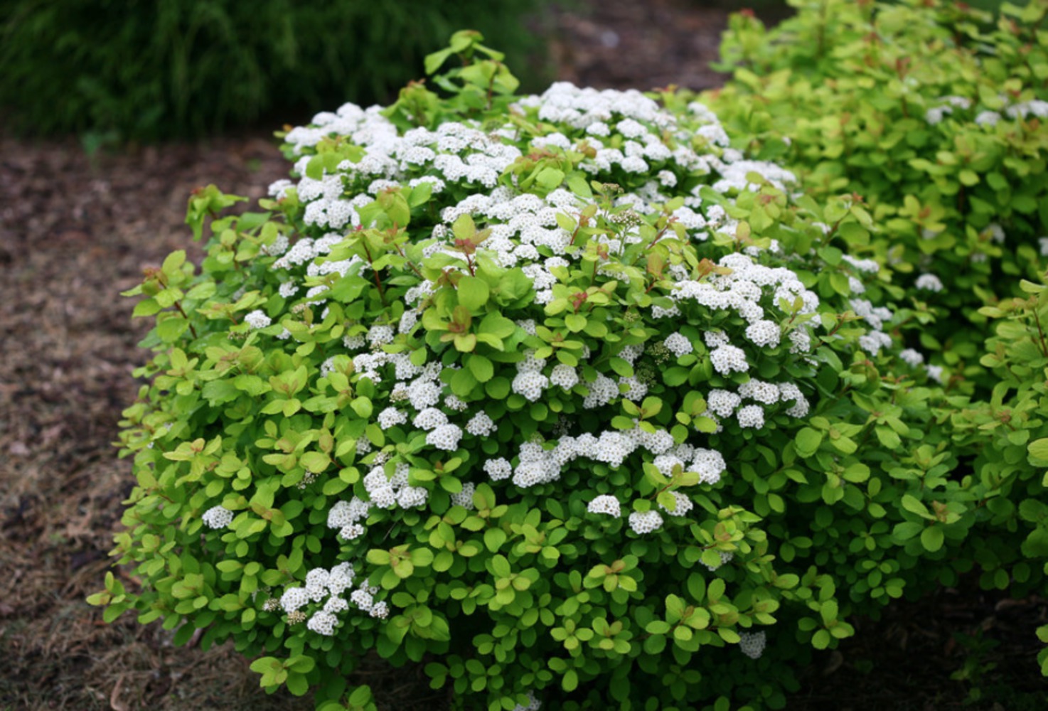 Низкорослый кустарник высотой до 70 см с обильным цветением, белоснежными цветами и компактной шаровидной кроной. Листья похожи на березовые, имеют желто-зеленый цвет с красноватым оттенком. Цветы мелкие, собраны в щитковые соцветия. Период цветения – с середины июня до сентября. Похожие товары