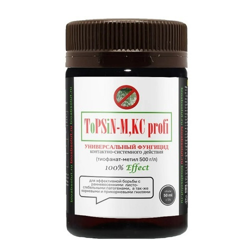 Эффективный контроль прикорневых гнилей, фузариоза колоса и уровня микотоксинов в зерне. -Действующее вещество тиофанат-метил относится к химической группе метилбензимидазол карбаматов, ингибиторам синтеза бета-тубулина. Препарат Топсин-М блокирует деление клеток гриба, предотвращая деление ростовой трубки и проникновение патогена в ткани растения. Влияет на формирования аппрессория и рост мицелия внутри тканей растения, оказывая лечебное действие. Похожие товары