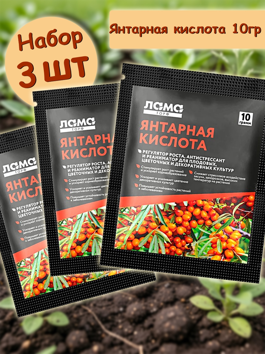 Янтарная кислота (3 пак. по 10гр.) Лама Торф