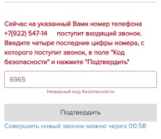 После нажатия кнопки "позвонить" начнется процедура подтверждения вашего телефона через входящий звонок. Вам необходимо будет запомнить последние четыре цифры входящего звонка и ввести их в специальную форму.