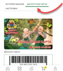 После процедуры Активации в меню "Профиль" (примерно через 1-2 мин.)должна появится опция "ДИСКОНТНЫЕ КАРТЫ" (в том случае если Вам выдавали пластиковую карту зарегистрированную на Ваш номер телефона)