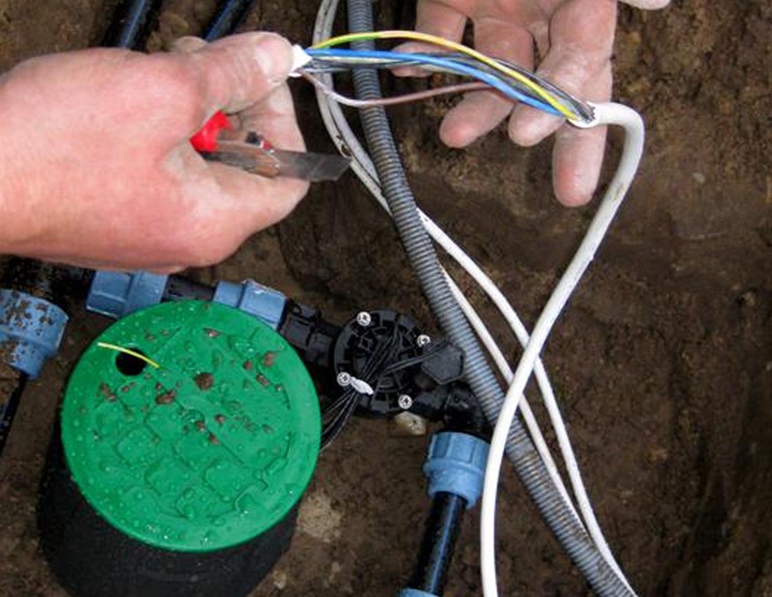 Кабельная сеть, подключенная к контроллеру, разводиться на электромагнитные клапаны. С помощью электрокабеля обеспечивается подача сигнала от контроллера к электромагнитным клапанам.