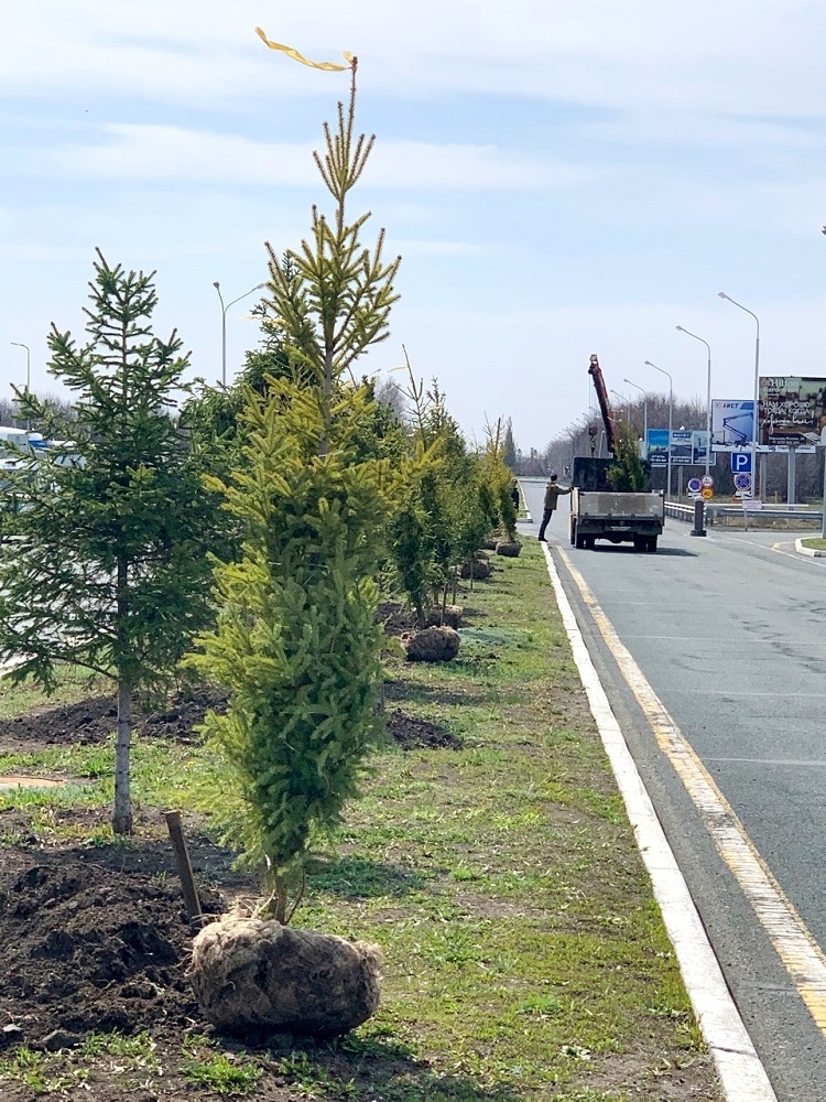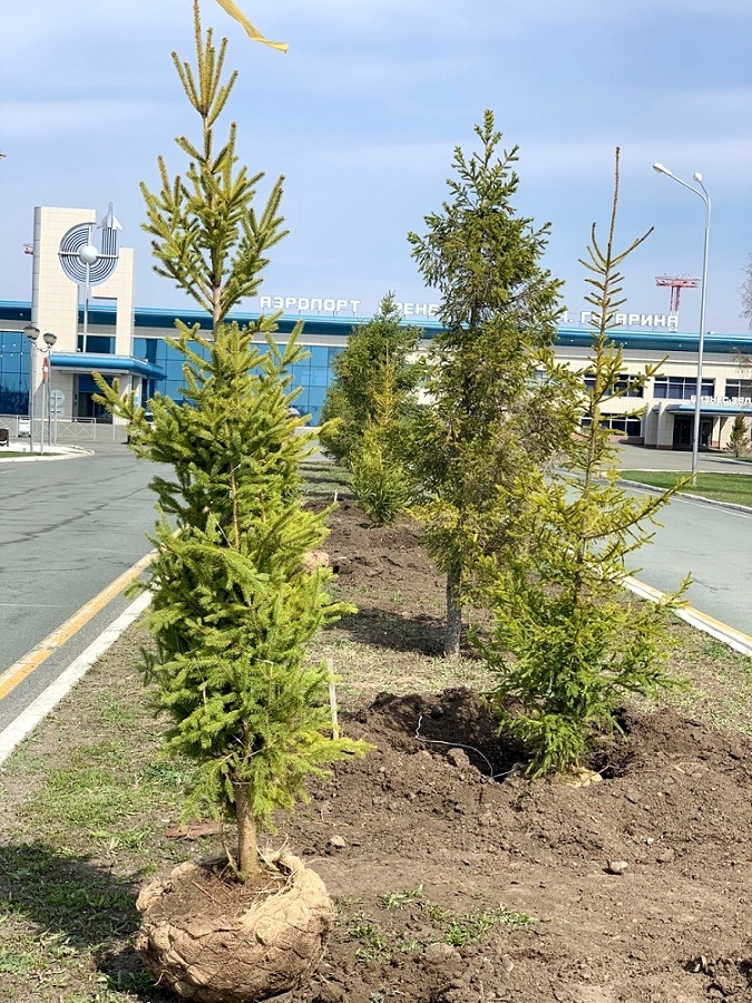 В Аэропорту посажены Ели Сибирские, высотой 270/300см, 19 шт.