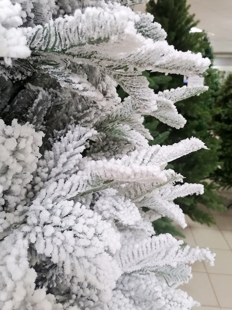 Заснеженные ели - одни из самых популярных дизайнерских решений для праздничного оформления любых интерьеров. Их хвоя покрыта искусственным снегом, который держится равномерным плотным слоем и абсолютно не осыпается.