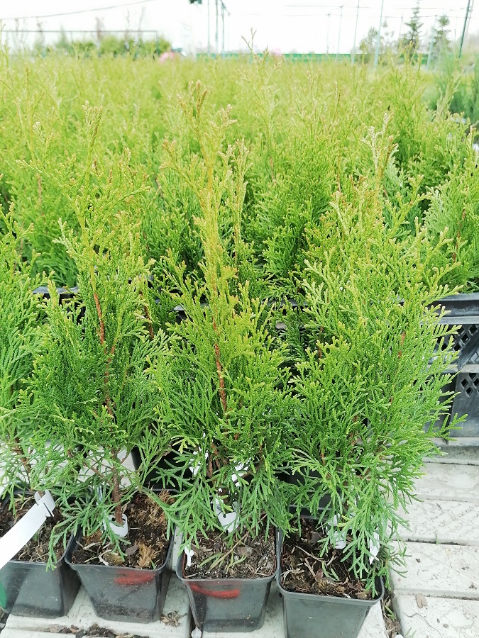 Самый быстрорастущий сорт туи западной с колонновидной формой кроны. В возрасте 10 лет достигает более 3,5 м в высоту. Хвоя светло-зеленая.