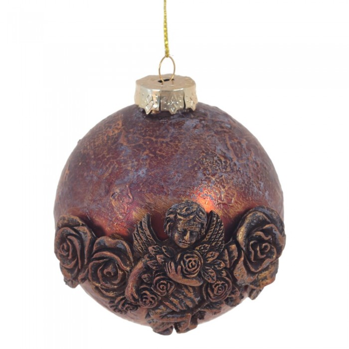 Новогоднее украшение в виде стеклянного шарика придаст вашей праздничной ели нотку винтажного шарма. Выдувное стекло с декором под старину. Диаметр шара 10 см. Похожие товары