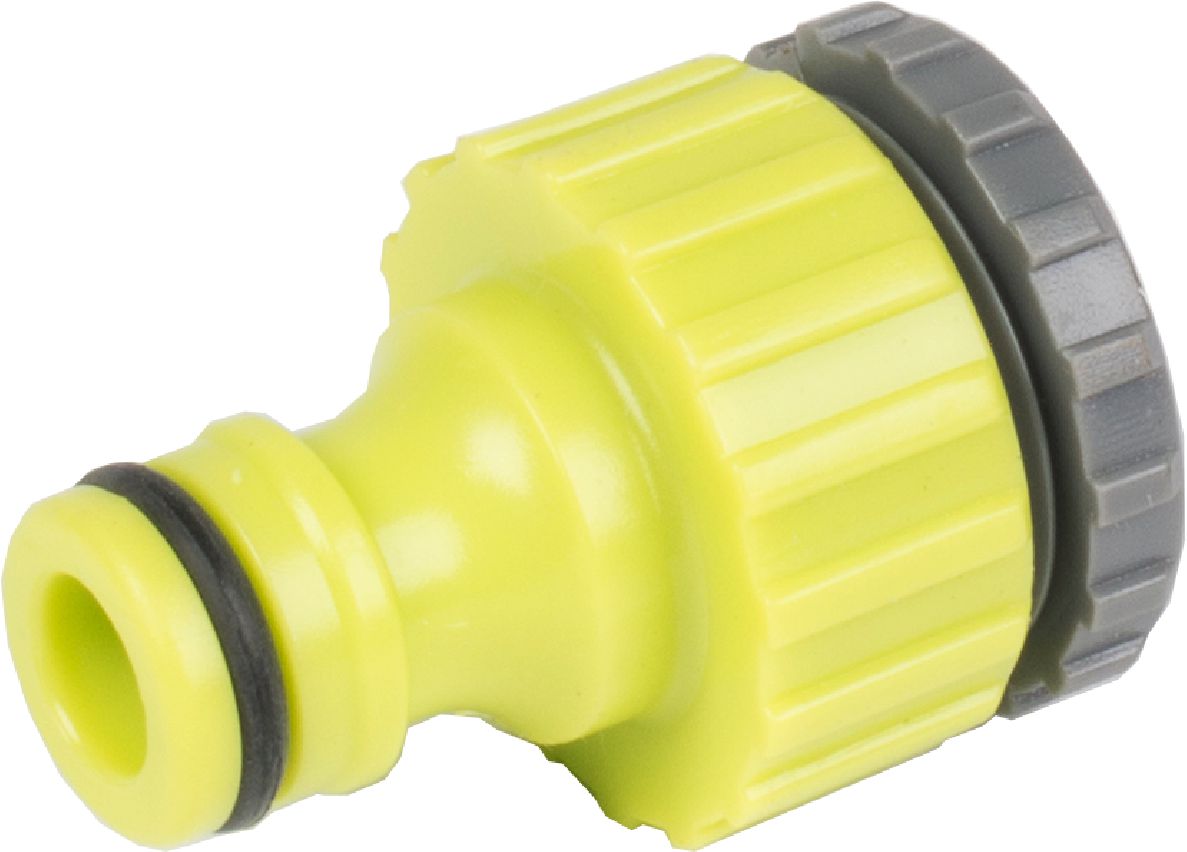 Коннектор универсальный с внутренней резьбой на 1/2 и 3/4. Служит для прямого подключения водопровода с резьбовым соединением со шлангом. Материал:пластик. Похожие товары