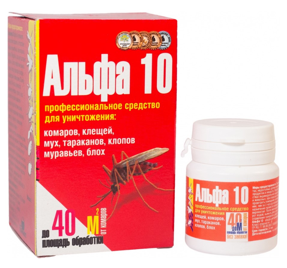 Назначение: предназначен для эффективного уничтожения тараканов, муравьев, клопов, блох, мух, комаров, а также иксодовых клещей — переносчиков возбудите- лей клещевого энцефалита и клещевого боррелиоза. Характеристика: инсектицидное средство в широко применяемой во всем мире форме — смачивающийся порошок, перед применением разводящийся водой по инструкции. Обладает быстрым инсектицидным эффектом в течение нескольких минут и остается активным на обработанных поверхностях не менее 6-8 недель, так как образуемая при нанесении на поверхности пленка раствора обладает стойкостью к внешним факторам и обеспечивает эффективность действия на насекомых в случае их повтор- ного появления. При обработке средством Альфа 10 отсутствуют следы и запах. Содержимое упаковки рассчитано на приготовление 1 литра рабочего раствора, достаточного для обработки до 20 м2. Действующее вещество: альфациперметрин 10% Похожие товары