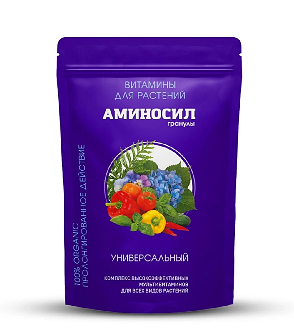 Содержат комплекс аминокислот, макро – и микроэлементов, которые в течение долгого времени обеспечивают все виды растений полноценным питанием, необходимым для стабильного развития и сильного естественного иммунитета. Витамины Аминосил универсальные в гранулах дают комплексное питание; улучшают обмен веществ за счет высокого содержания аминокислот; способствуют росту и развитию корневой системы, усиливают вегетацию; пролонгируют цветение; увеличивают урожайность и качество плодов; повышают устойчивость к заболеваниям и стрессам; имеют 100% органический состав. Витамины Аминосил универсальные в гранулах подходят для всех видов растений: комнатных, тепличных, оранжерейных и садовых растений. Похожие товары