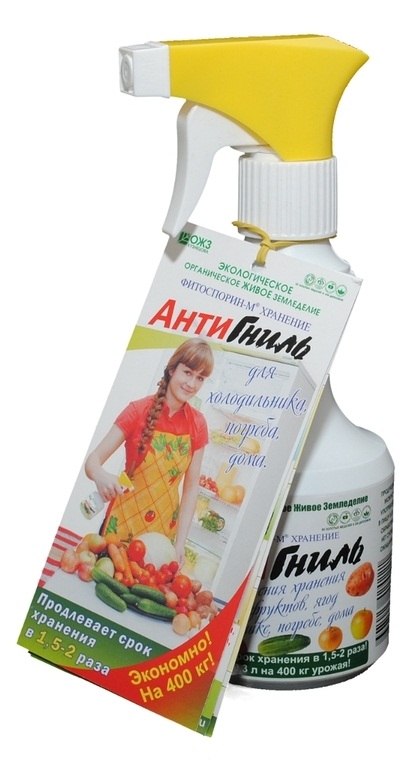 Одного флакончика с распылителем вам хватит на обработку 300-400 килограммов выращенной продукции. Биопрепарат способен увеличить срок сохранности продуктов в подвалах, погребах и даже холодильниках, как минимум, в два раза. Биопрепарат не только безопасен, но даже полезен для человека. Так что оздоровленную «АнтиГнилью» продукцию можно сразу же использовать в пищу. Новым препаратом можно пользоваться без всяких ограничений для обработки холодильников, погребов, хранилищ. Мощное средство быстро уничтожит все следы гнили. Применение биофунгицида нового поколения очень простое. Несколько нажатий на кнопку распылителя, и ваши овощи и фрукты готовы к закладке на хранение. В целях профилактики полезно опрыскивать «Антигнилью» внутренние поверхности хранилищ, погребов. Расход препарата - всего 0,3 л на обработку 30 м2 площади. Похожие товары