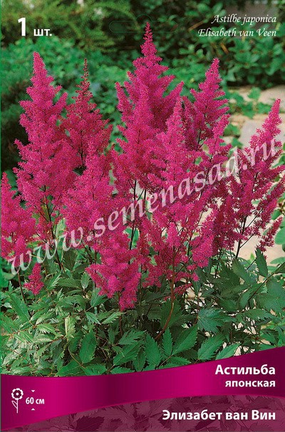 Астильбы – многолетние корневищные травянистые растения с отмирающей на зиму надземной частью. Стебли прямостоячие, высота в зависимости от вида - до 200см. Своими красками и формами эти растения оживляют светло-тенистые места в саду. Цветки розовые, светло-розовые, карминовые, красные, красно-фиолетовые, сиреневые, кремовые или белые в зависимости от сорта. Многочисленные цветочки собраны в крупные ажурные метелки. Характер роста кустовидный, от прямого до раскидистого. Месторасположение: оптимальная освещенность - разреженная тень или затенение в самое жаркое время дня. Не переносит мест с сухим воздухом. Почва: удобренная, глинисто-навозная. Размножение: делением кустов ранней весной раз в 4-5 лет. Цветение: цветет с конца июня до начала августа. Использование: астильбы — прекрасные растения для озеленения. Их можно высаживать моногруппами вблизи кустарников. А одиночные вкрапления астильбы выглядят особенно элегантно среди посадок декоративных хвойных. Лучше всего чувствуют себя у водоемов или во влажных полутенистых местах. Астильба японская - растения данной группы образуют широкораскидистые кусты высотой 50-80см. Листья дважды перистые, темно-зеленые, глянцевые, на красноватых черешках, что делает куст нарядным до и после цветения. Цветки с приятным ароматом, собраны в плотные, ромбические соцветия. Элизабет ван Вин – высота растения 60см, цветки темно-малиново-красные. Похожие товары