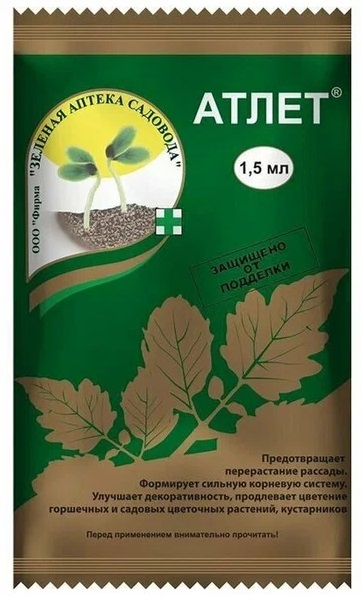 Атлет - незаменимый помощник при выращивании рассады. Препарат сдерживает рост в высоту надземной части растения, при этом способоствует утолщению стебля и значительному росту корней.Рассада не вытягивается даже при низкой освещенности, загущении и высокой температуре! Атлет ускоряет образование первых соцветий и число завязей в них. Обеспечивается выход ранней продукции, и общий урожай увеличивается на 20- 30%. Похожие товары