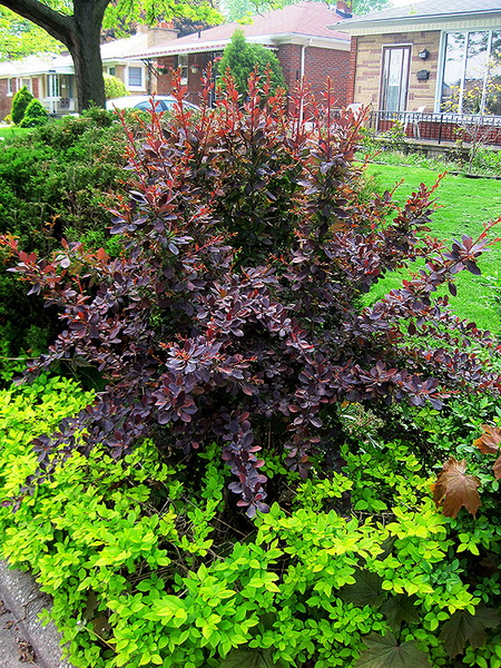 Барбарис тунберга Атропурпуреа – это раскидистый колючий кустарник, максимальная высота которого составляет 1,5 метра, а диаметр – 2 метра. Годовой прирост большой, зрелости растение достигает к 8 – 10 годам. Ветви изогнуты дугами, крона очень густая. При выборе места для посадки барбариса предпочтение лучше отдать солнечным местам или легкой полутени. Обратите внимание, что чем меньше растение получает солнечного света, тем тусклее будут его листья. Не выносит застойных вод и сильных ветров. Хорошо переносит стрижку, поскольку имеет свойство быстро восстанавливаться. Подходит для создания живой изгороди. Похожие товары