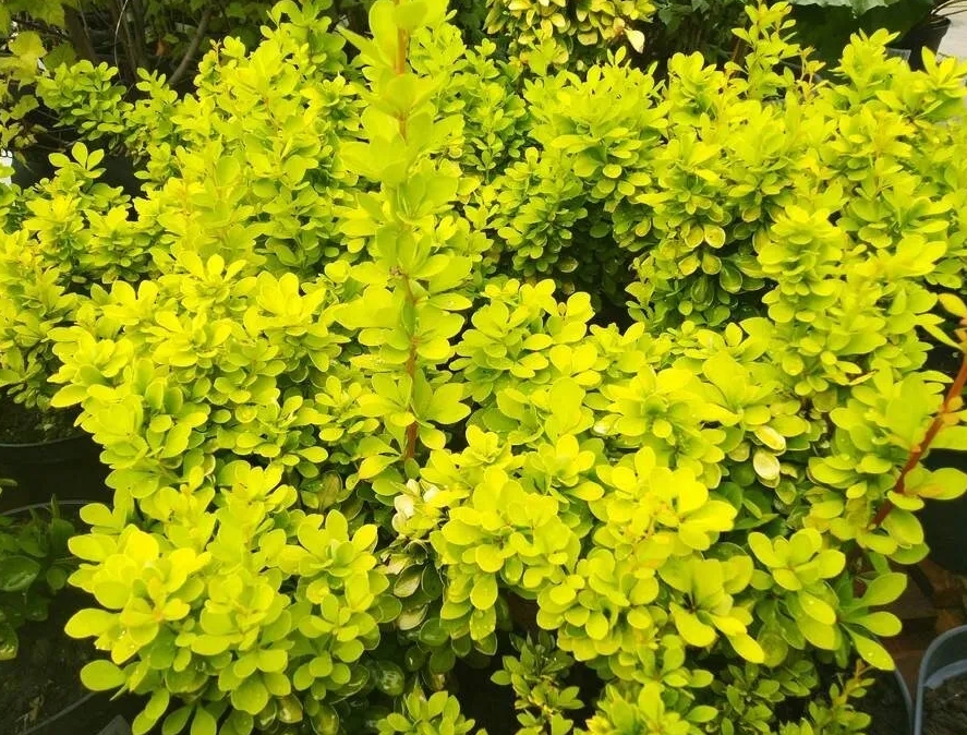 Имеет слабораскидистую подушковидную крону. Высота – до 70 см, диаметр – до 100 см, такие параметры говорят, что растение весьма компактное. Побеги молодых растений окрашены в красно-коричневый цвет. Листья овальной формы, небольшие и текстурные. Весной они приобретают желто-зеленую окраску, а летом становятся ярко-желтыми. Осенью листва меняет свой цвет на оранжевый. Похожие товары