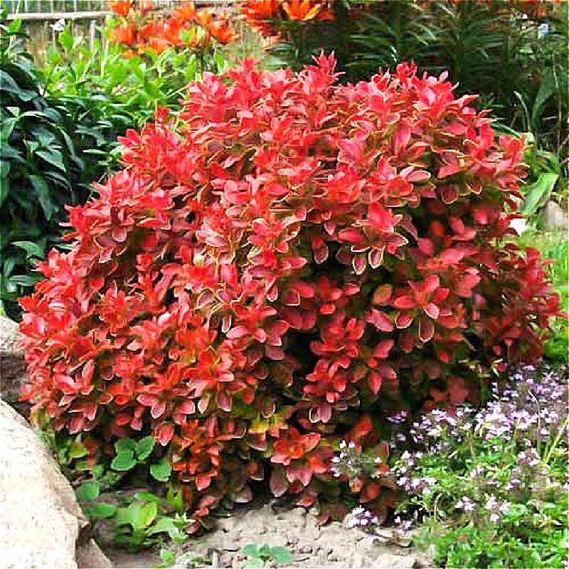 Очень компактный (высотой всего до 1м), медленнорастущий кустарник, отлично текстурированный с изумительной переливчатой листвой. Крона округлая. Молодые побеги- интенсивно-красные. Листья яйцевидно-овальные, мелкие, кораллово-розово-малиновые с золотистой каймой в течение всего сезона. Цветет в мае. Цветки внутри желтые, снаружи красные, диаметром до 1 см, собраны в пучки по 2 - 5 штук. Плоды кораллово-красные, блестящие, созревают в октябре. Похожие товары