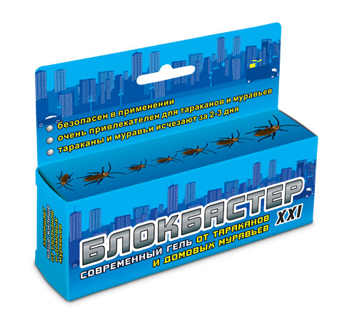 Можно ли полностью уничтожить тараканов, да еще без вреда для собственного здоровья? И чтобы при этом забыть о них на годы? — Да, можно. Именно этому служит новый супер — гель «Блокбастер XXI». Это современное, инновационное средство. Отличительное свойство этого геля в том, что он содержит в своем составе сразу два действующих вещества (тиаметоксам и альфа-циперметрин). Они усиливают действие друг друга и уничтожают даже самых устойчивых тараканов. Гель «Блокбастер XXI» уже через 2-3 дня полностью истребит всех тараканов в Вашем доме. Гель обладает «каскадным» эффектом: даже один съевший его таракан передает смертельную дозу яда своим сородичам в количестве до 50 штук. Входящие в его состав привлекатели заставляют тараканов предпочитать эту приманку любой другой пище. Гель «Блокбастер XXI» не портится, не высыхает и не теряет своей эффективности очень долгое время. Гель удобен в применении, легко наносится в труднодоступные места. Не имеет неприятного запаха, не выделяет в воздух вредных веществ и может применяться людьми, страдающими аллергией или астмой. Входящая в его состав, горькая для млекопитающих добавка «битрекс» предотвращает случайное поедание геля домашними животными. Гель «Блокбастер XXI» бесцветен и не заметен на обрабатываемых поверхностях. Один шприц-дозатор рассчитан на обработку помещений площадью 70-100 м2. Действующее вещество: тиаметоксам — 0,2%, альфа-циперметрин — 0,05%, стабилизатор, консервант, гелеобразователь, битрекс и пищевые аттрактанты. Применение: нанести гель пунктиром (2 см геля — 2 см необработанной поверхности) вдоль плинтусов, в щели и другие отверстия, где могут укрываться тараканы. Гель можно наносить на подложки (по 5-6 полосок длиной 6-9 см с интервалами 1-2 см) и расставлять их в местах обитания, скопления и передвижения тараканов. Массовая гибель тараканов наступает на вторые сутки. (Примечание: «Блокбастер XXI» может быть использован также против домовых муравьев). После гибели тараканов рекомендуется оставить «Блокбастер XXI» в точках расположения еще на 2-4 недели, чтобы уничтожить вновь отродившуюся молодь и тараканов-разведчиков других колоний. В случае высокой заселенности тараканами всего многоэтажного дома, подвалов и т.п. рекомендуется оставить гель «Блокбастер XXI» для постоянного нахождения в некоторых «стратегических» точках (вентиляционных каналах, у стояков канализационных труб, за кухонной мебелью, под холодильником и т.п.). «Блокбастер XXI» обладает очень высокой стабильностью и сохраняет свои свойства длительное время. Находясь в местах расположения, не выделяет в воздух вредных веществ. Срок годности: 3 года. Похожие товары