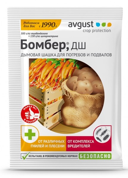 Активна против различных болезней(фузариоза,фомоза,сухой гнили,всех видов кагатной гнили и др.). Уничтожает подвальных слизней,картофельную моль,клещей,мокриц,кивсяков,муравьев и др.вредителей,отпугивает грызунов. Обработка дымом обеспечивает проникновение действ.вещ-в в труднодоступные места обитания вредных организмов-щели,трещины,норы грызунов и т.д. Удобна и проста в использовании. Похожие товары
