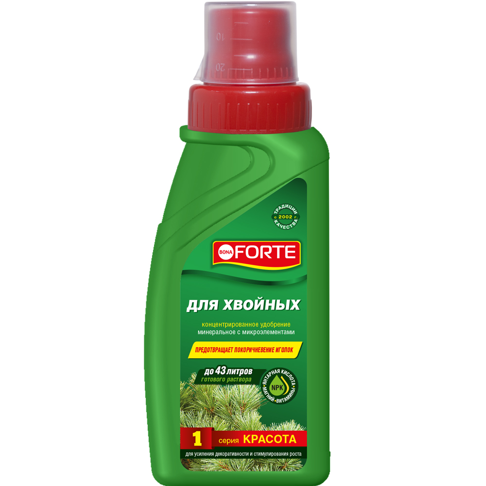 Серия КРАСОТА создана лабораториями Bona Forte для усиления декоративности и стимулирования роста растений. Удобрение содержит полный комплекс веществ, необходимых для полноценного и сбалансированного питания растени Основные микроэлементы питания для обеспечения жизнедеятельности растений. Mg МАГНИЙ Мезоэлемент, способствующий процессу фотосинтеза, обеспечивает яркость и зелень листвы, предотвращает старение. Микроэлементы В ХЕЛАТНОЙ ФОРМЕ Важные элементы для полноценного питания растений. Хелатная форма способствует полному усвоению микроэлементов и их пролонгированному действию. C, B1, PP ВИТАМИНЫ Витамины ускоряют начало цветения, делают его более интенсивным и продолжительным Янтарная кислота Мощный стимулятор роста: активирует основные процессы роста и развития, повышает иммунитет растений. КАК ИСПОЛЬЗОВАТЬ: Рекомендация Bona Forte: лучший результат дает совместное использование корневых (полив) и внекорневых подкормок (опрыскивание листьев раствором удобрения). Корневая подкормка: Отмерьте 10 мл и разведите в 1,5 л воды. Норма расхода раствора – как при обычном поливе. Внекорневая подкормка: Отмерьте 5 мл и разведите в 1,5 л воды. Опрыскивайте поверхность листьев до полного смачивания, избегая попадания раствора на цветки. Расход одного флакона: • при корневой подкормке: 43 литра раствора. • при внекорневой подкормке: 85 литров раствора. ! Неиспользованный готовый рабочий раствор можно хранить до следующей подкормки, но не более двух недель. Важно: ·Пересаженные растения подкармливать не ранее, чем через 7-14 дней. ·Нельзя подкармливать больные растения, если только это болезненное состояние не связано с недостатком питательных веществ. Дополнительная информация: Удобрение не боится заморозки: после размораживания, удобрение не теряет своих свойств. После окончания срока годности удобрение не теряет агрономической ценности. Похожие товары