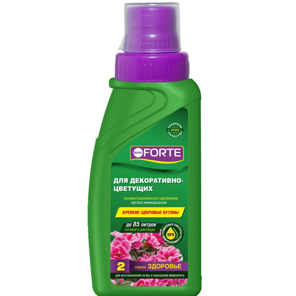Отличным удобрением для декоративно-цветущих культур является подкормка Бона Форте « Сила и здоровье». Удобрение выпускается в жидком концентрированном состоянии. В его составе имеются все необходительные питательные элементы: микро- макроэлементы мезоэлемент витаминный комплекс. Все эти вещества находятся в хорошо сбалансированном и легкоусвояемом состоянии. Похожие товары