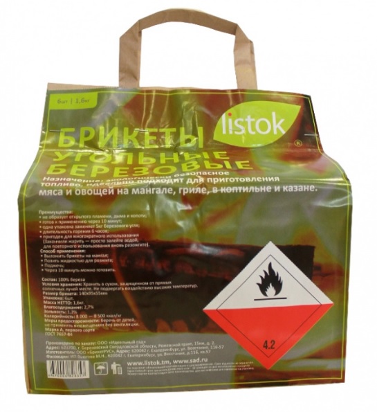 Брикеты угольные LISTOK березовые 6шт 1,6кг