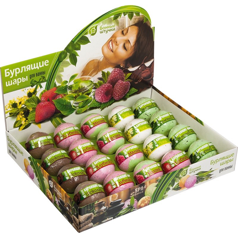 Бурлящие шары для ванны (липа,шоколад,клубника,малина,зеленый чай) в дисплей-боксе, 120 г "Банные шт