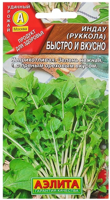Неприхотливый, быстро растущий, холодостойкий сорт. Формирует урожай ценной зелени за 3 недели от всходов. Розетка листьев крупная, в фазу технической спелости высотой 20-25 см, массой 18-20 г. Растения при достаточном увлажнении долго не стрелкуются и цветут поздно. Листья имеют слабый аромат и маслянисто-ореховый вкус с легкой пряной остротой. Зелень богата каротином, железом, йодом, цинком; используется в салатах и гарнирах. По вкусу руккола хорошо сочетается с сырами, мясом, рыбой. Урожайность зелени 2-2,5 кг/м2. Похожие товары