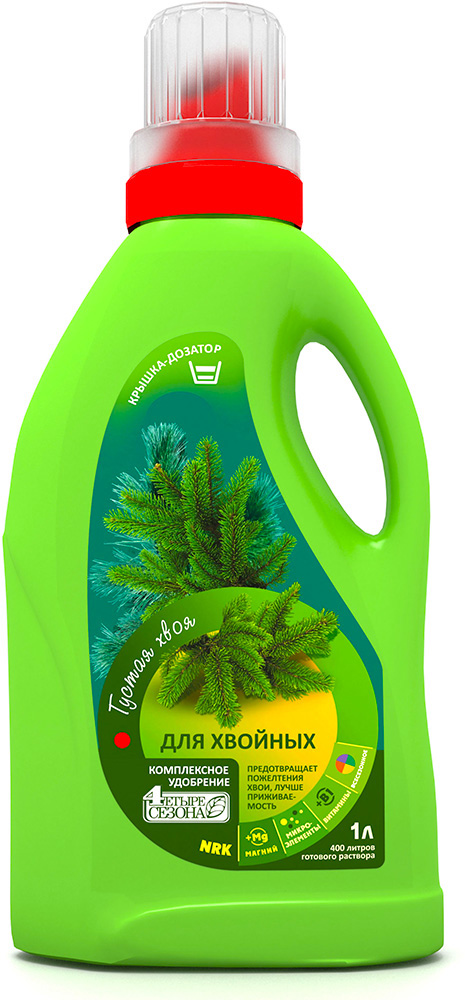 Удобрения для хвойных, способствующее усвоению кальция и магния. - повышает декоративность; - увеличивает устойчивость к неблагоприятным факторам внешней среды; - препятствует пожелтению хвои; - усиливает цвет. ПРИМЕНЕНИЕ: Весна, лето. Частота применения 1 раз в неделю. СОСТАВ: Содержание макроэлементов: азот - 10, фосфор - 27, калий - 50 г/л. Содержание микроэлементов: медь - 17, железо - 140, цинк - 30 мг/л. pH 3.0. Похожие товары
