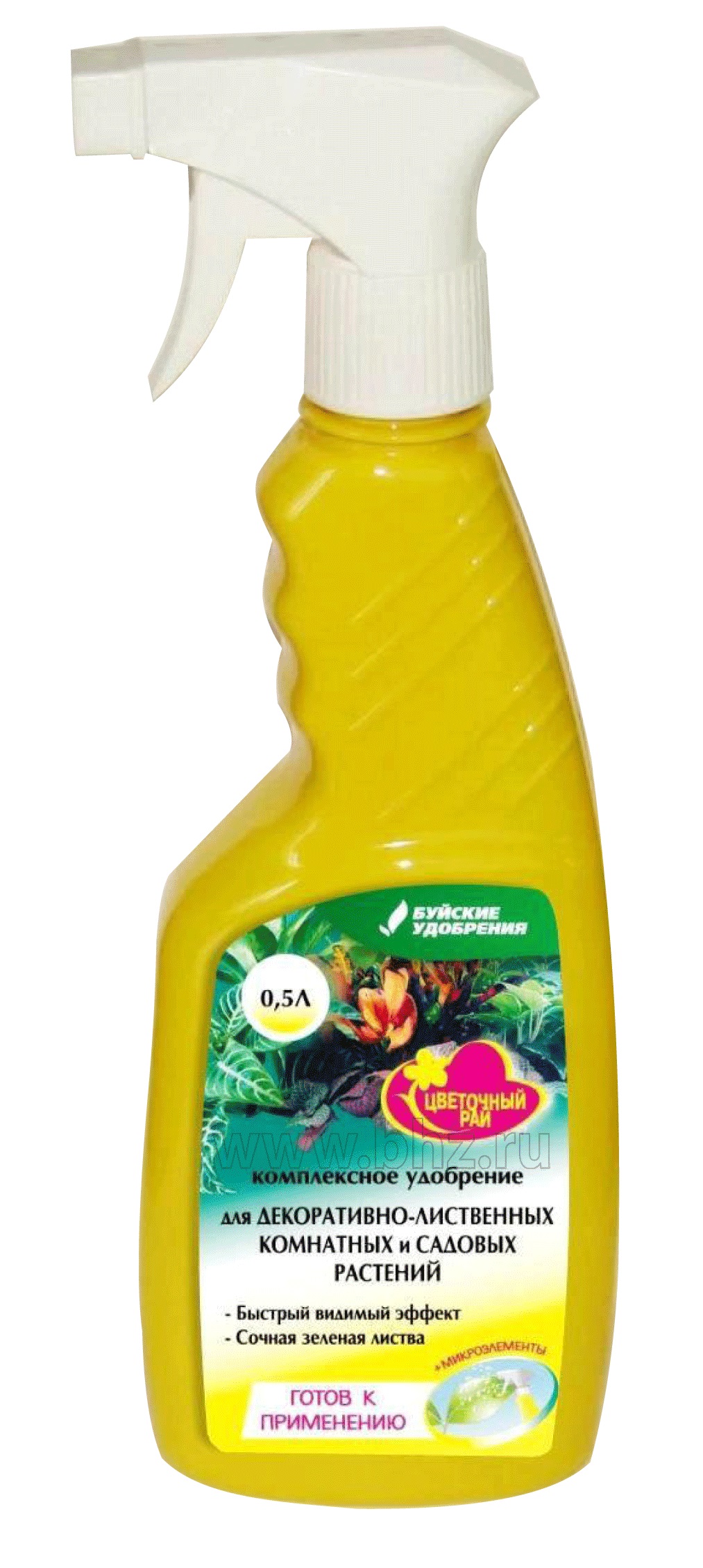 Назначение: Быстродействующее комплексное удобрение серии "Цветочный рай" для питания декоративно-лиственных, комнатных и садовых растений. Жидкие подкормки «Цветочный рай» В состав входят основные элементы питания азот, фосфор, калий, магний, а также микроэлементы. Сбалансированный комплекс высокоэффективных, легкодоступных для растений микроэлементов – Fe, Mn, Zn, Cu, в виде сложных органических солей – хелатов, а также B, Mo. Наличие этих элементов способствует здоровому росту и развитию растений. Стимулирует развитие побегов, сочной зеленой листвы. Устраняет видимые проявления дефицита элементов питания, предотвращает развитие болезней, вызванных недостатком тех или иных микроэлементов. На практике садоводам затруднительно вносить микроэлементы отдельно. Внесение их в составе «Цветочный рай» существенно упрощает этот процесс, а так как они содержатся в физиологически выверенных пропорциях, нет риска излишнего внесения. Преимущества: Комплексное, жидкое Быстрый, видимый эффект Сбалансированный состав Способствует появлению роскошной зелени Увеличивает сопротивляемость растений неблагоприятным условиям среды, болезням Доза применения препарата Подкормки проводят путем опрыскивания растений: в летний период (с марта по сентябрь) 1 раз в 7 – 10 дней, в зимний период – 1 раз в месяц. Время, особенности применения Расход раствора на одну подкормку – до полного смачивания листовой поверхности растения. Похожие товары