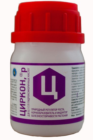 Циркон - мощный индуктор болезнеустойчивости (иммуномодулятор), корнеобразователь, обладает фунгицидным действием, обеспечивает защиту растений от засухи. Индуктор цветения и плодообразования. Нормализует обмен веществ растений. Изготавливается из природного сырья - эхинацеи пурпурной. Препарат фирмы НЭСТ М -препарат полифункциональный -принцип действия: не стимуляция, а индукция внутренних механизмов защиты самого растения и непосредственное действие на сам фитопатоген. Действие Циркона - при замачивании семян в 2,5 раза увеличивает проникновение воды через оболочку, активирует энергию прорастания и всхожесть, в том числе и некондиционных семян, активизирует ростовые процессы и увеличивает биомассу растений, повышает урожайность, выход зрелых семян. -активизирует образование корней ( увеличивает их объем до 300%). Позволяет эффективно укоренять черенки (ускоряет появления каллуса и корней ). - является индуктором цветения - ускоряет цветение и способствует плодообразованию, сохранению завязей у овощных( перец, баклажан,томат, огурец, кабачок, тыква, дыня и т.д.) и плодово-ягодных культур (косточковые, семечковые, ягодные кустарники). - эффективен против осыпания завязей у плодово-ягодных культур (особенно у косточковых) и овощных (особенно у перца и баклажана). - при пересадке: уменьшает транспирацию, повышает всасывание воды и питательных веществ, повышает эффективность фотосинтеза, обеспечивает хорошую приживаемость и рост пересаженных растений. В условиях засухи оказывает адаптогенное действие. Возрастает фотосинтетический потенциал, увеличивается листовая поверхность и общая биомасса. - обладает фунгицидными и отчасти противовирусными свойствами, к препарату нет привыкания. Снижает пораженность мучнистой росой, пероноспорозом, фитофторозом, корневыми гнилями и др. на 20-60%. Использование Циркона 50 мл (экономичный флакон с капельным дозатором) на 500 литров воды. При необходимости можно отмерять дозировку шприцем без иглы. 1 мл примерно 35-40 капель. 0,025 мл = 1 кап. Приготовление рабочего раствора: 1 мл Циркона растворяют в 10 л воды и тщательно перемешивают. Опрыскивание проводят равномерно смачивая листья. Рабочий раствор следует использовать в день приготовления. Опрыскивание производить утром или вечером в сухую безветренную, но не дождливую погоду. Следует помнить, что д.в. препарата Циркона усваивается растением всего за 16-18 часов. Предпосевная и предпосадочная обработка. - Семена овощных культур- замачивают в растворе Циркона (1 капля на 100 мл воды) 2-4 часа при комнатной температуре. - Картофель- перед посадкой в грунт опрыскивают клубни в растворе Циркон 1 мл + 7-10 мл питательного раствора Цитовит на 10 л воды . - Черенки перед посадкой замачивают в растворе Циркона (1 мл на 10 л воды) 10-16 часов. Опрыскивание вегетирующих растений -Рассада - грибные заболевания рассады (черная ножка и др.) - пролить землю раствором Циркона под корень (4 капли на 100 мл воды) и опрыснуть листья (1 капля на 100 мл воды). От перерастания рассады: - опрыснуть питательным раствором Феровит 15-20 капель на 1 л воды - Для овощных культур- опрыскивание Цирконом 1 мл + 7-10 мл питательного раствора Цитовит на 10 л воды проводят в фазу всходов, бутонизации, цветения до образования плодов. - Земляника( клубника) - фаза бутонизации, цветение - обработка Циркон 1 мл + 7-10 мл пи