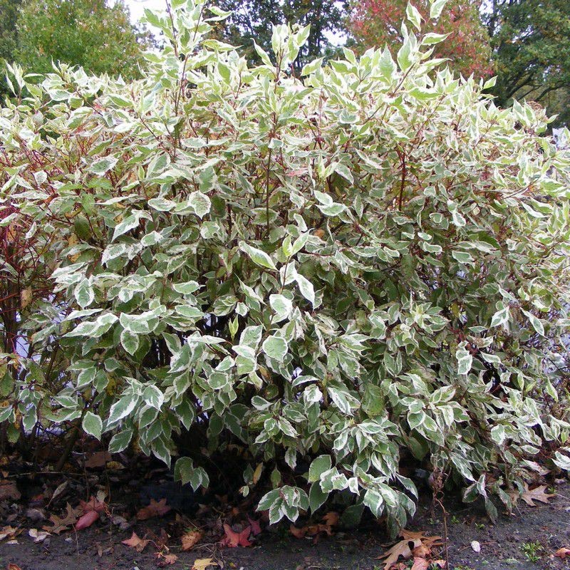 Дерен белый "Элегантиссима" (Cornus alba 'Elegantissima') – так называется это красивое растение семейства кизиловых. Этот листопадный кустарник очень хорошо разрастается, достигая трехметровой высоты. Крона растения может разрастаться в целые «острова» до 5 метров в диаметре, причем ветки, достигая земли, укореняются. В природе кустарник распространен в Сибири, его можно встретить в средней полосе России, а также на Украине и в некоторых районах Белоруссии. Листья яйцевидной формы, темно-зеленого цвета с белой каймой или налетом. Цветки – зонтичные, период цветения приходится обычно на май месяц. Плоды мелкие, белого или голубовато-серого цвета, размером с горошину. Корневая система состоит из множества мелких и тонких корней – именно поэтому куст может быстро высохнуть в условиях жесткой засухи. В остальном дерен белый одинаково хорошо переносит морозную зиму и жаркое лето. Долговечность кустарника – более 25 лет. Озеленение Растение на протяжении многих лет выращивается в парках и вдоль дорог и аллей городов, в современном мире активно используется для озеленения. Куст прекрасно переносит стрижку, поэтому из него выходит отличная живая изгородь, которую можно высаживать вдоль заборов, дорожек, перед домом. Также кусты дерена можно использовать для создания фоновых композиций. Учитывая, что растение исключительно красиво в осенний период, дерен можно высаживать с другими кустами и деревьями, листья которых осенью приобретают яркие окраски. Хорошо дерен белый смотрится в виде небольших островков посередине газонов – данный прием особенно часто использовался в советское время при оформлении территории санаториев и зон отдыха. Также кусты дерена могут замаскировать хозяйственные постройки либо какие-то неприглядные объекты. Посадка и уход Сажать дерен белый лучше всего в оттаявшую, рыхлую и мягкую землю. Кустарник очень быстро растет, поэтому расстояние между кустами должно составлять хотя бы 1 метр. Для живой изгороди расстояние можно уменьшить до 30 сантиметров. Место для посадки лучше выбрать солнечное, но сгодится и полутень. Стоит помнить, что саженцы первое время потребуют полива, особенно в первые летние и весенние месяцы. В дальнейшем, когда кустам исполнится 1-2 года, поливать можно изредка, только при очень сильной жаре. Что касается удобрений, то их вообще можно не вносить, поскольку дерен абсолютно нетребователен к почве. Однако если почву удобрить гумусом либо торфом, растение будет расти более быстро. Сорняки также могут помешать дерену в первый год после посадки, так что время от времени необходимо заниматься прополкой. Не помешает и мульчирование в первые месяцы, оно хорошо помогает сохранить почву влажной и избавиться от сорняков. После того как кусту исполнится три года, можно практиковать ежегодное обрезание веток с целью придания кусту правильной формы. Обычно обрезают старые ветви, а также те, которые выступают за профиль растения. Также можно производить обрезку с целью активации интенсивного ветвления в нижней части растения. Стоит помнить, что если обрезку не делать совсем, растение будет оголяться в нижней части. Размножение дерена осуществляется черенками, которые высаживаются в холодную теплицу в мае-июне. На зиму их выкапывают и уносят в подвал, а к весне черенки уже можно высаживать в почву. Болез