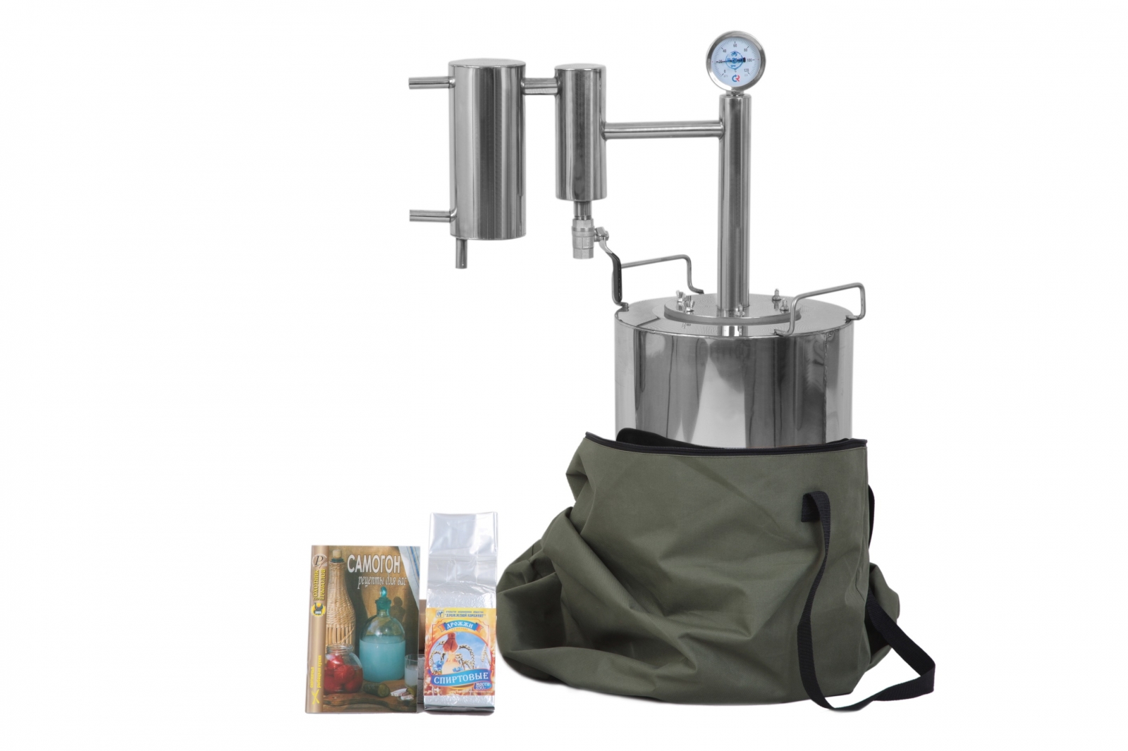 Компактный дистиллятор с сухопарником, предназначенный для домашнего использования. Объем бака составляет 12 литров. Аппарат позволяет получить напиток высокого качества, при соблюдении не сложных правил перегонки. Все, что необходимо сделать, это залить брагу и поставить аппарат на плиту. Сухопарник — это небольшая дополнительная емкость, установленная между основным баком и змеевиком. Она исключает попадание браги в конечный продукт. Сухопарники наших дистилляторов оснащены специальным клапаном для слива сивушных масел, что значительно улучшает качество получаемого напитка. Бак аппарата изготовлен из пищевой нержавеющей стали марки AISI 304/430 толщина стенки бака составляет 2 мм, что обеспечивает долгий срок службы изделия и качество конечного продукта. Из этой же стали изготавливается и змеевик аппарата, соответствующий классической схеме из пяти спиральных витков. Для охлаждения змеевика аппарат подключается к источнику холодной воды, например, к обычному крану холодной воды. Поэтому его можно использовать как в городской квартире, так и в частном доме или на даче при наличии водопровода. Нагревание бака происходит от внешнего источника тепла — подойдет как электрическая, так и газовая плита. Дистиллятор имеет простую и надежную конструкцию, бак легко чистить после использования. Качественные материалы и комплектующие, как например, металлический термодатчик и прокладки из термостойкого пищевого силикона позволяют гарантировать длительный срок службы аппарата и его надежность. Похожие товары