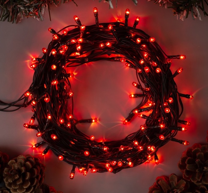 Эл.гирл. Нить (7м. 180 ламп) 220V, нить темная, свечение Красное 671007 (СЛ)