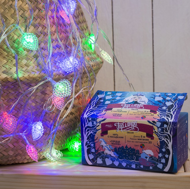 Эл.гирл. Нить с насад. Сердце малое (5м.) LED-20-220V Мульти 1080397 (СЛ)