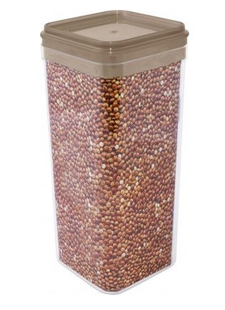 Тип: емкость. Назначение: для сыпучих продуктов. Материал: пластик. Цвет емкости: прозрачный. Цвет крышки: коричневый. Объём: 2,25 л. Высота: 27,9 см. Крышка с уплотнителем. Похожие товары
