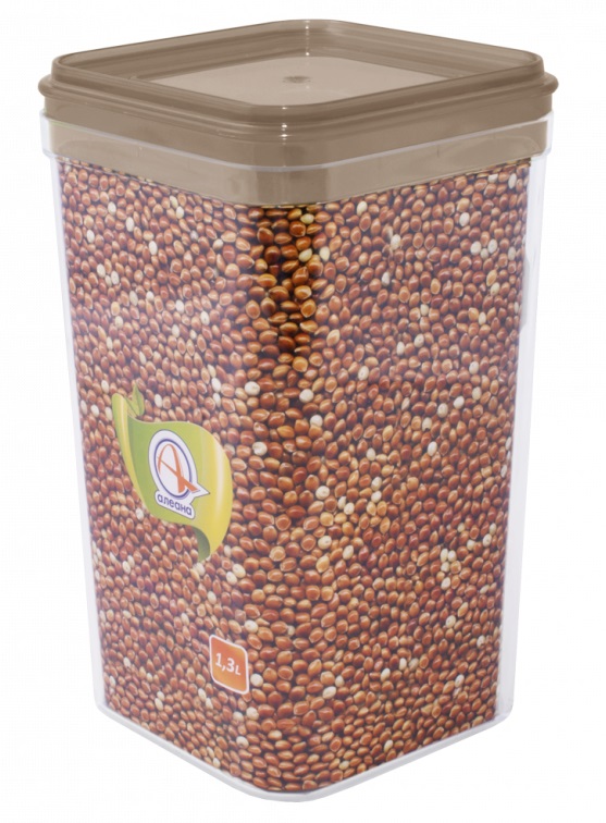 Емкость для сыпучих продуктов Фикс 1,3л прозр.-какао 169059 (Алеана)