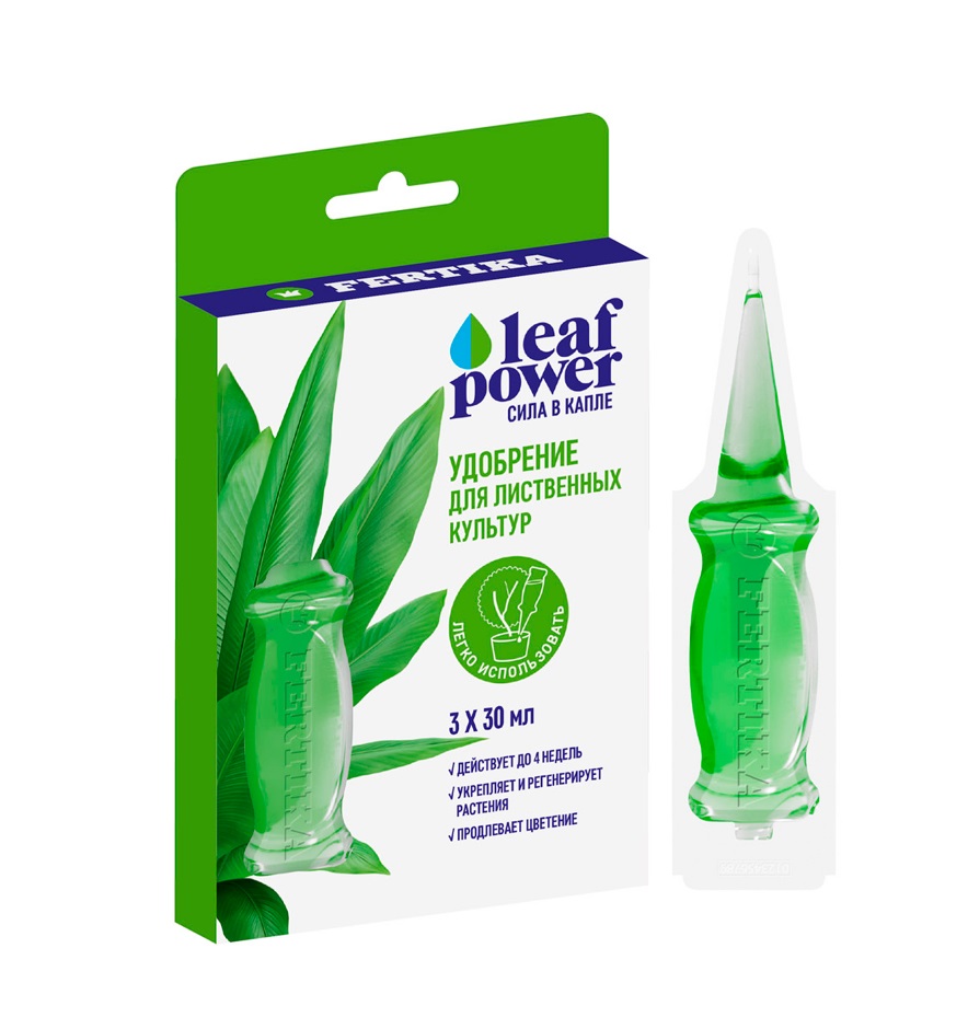 Leaf power – питание для декоративно-лиственных Специальное, инновационное удобрение, предназначенное для питания всех разновидностей декоративно-лиственных растений. Специальная формула обеспечивает сбалансированное питание. Регулярное использование влияет на состояние корневой системы, поддерживая нужную упругость листьев, увеличивая их размер и повышая интенсивность окраски с достижением максимальной декоративности растения. Профессиональные, эстетичные и готовые к использованию аппликаторы облегчают применение. Похожие товары