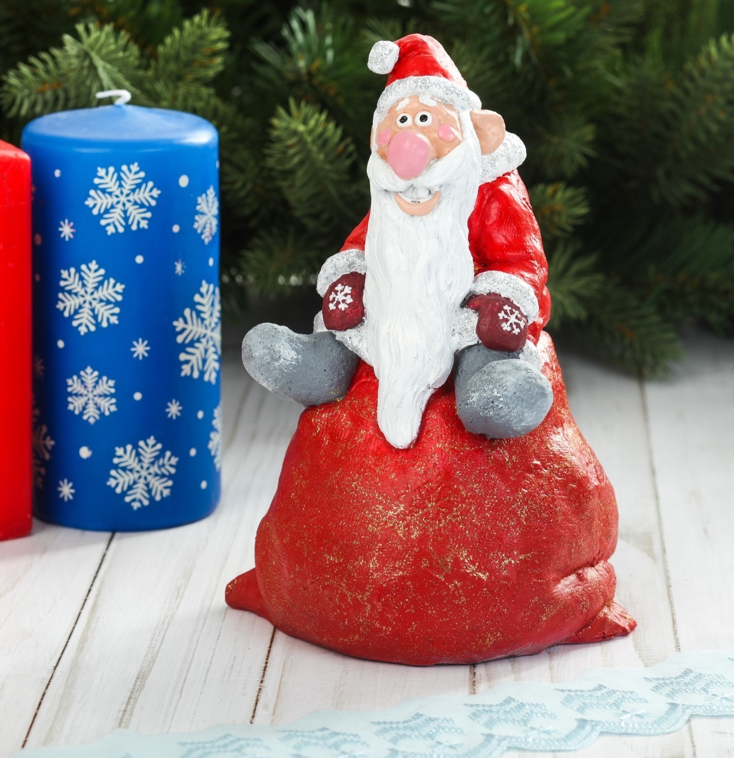 Фигура Дед Мороз на мешке 12х11х16см. Ф061