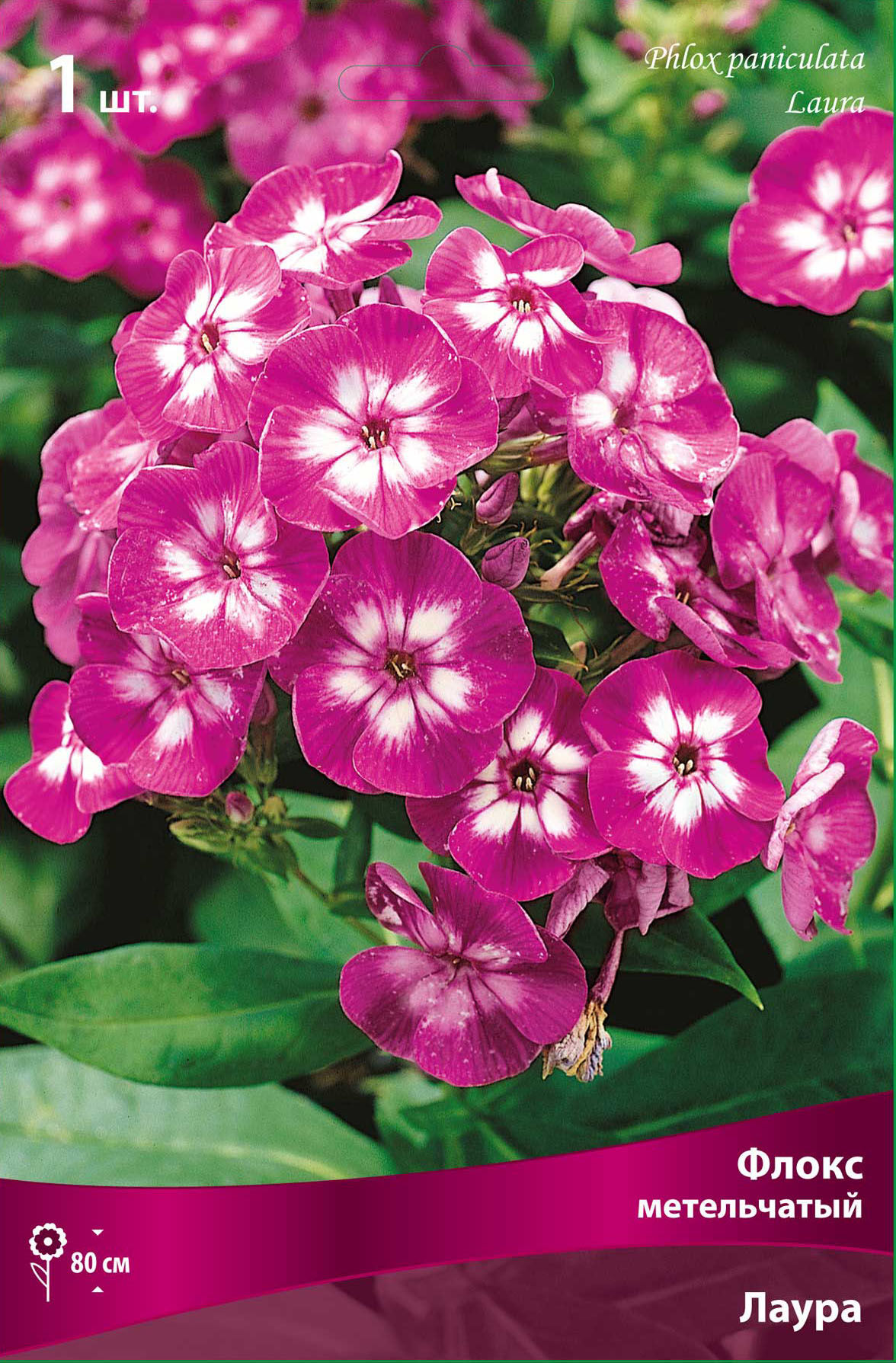 Флоксы - растения травянистые многолетние. Листья цельнокрайные, сидячие, расположены супротивно, иногда в верхней части. Цветки душистые с глазком в центре, 2,5-4см в диаметре. Месторасположение: предпочитают солнечные, прохладные места. Не переносят жарких участков. Почва: свежая, влажная, рыхлая, богатая питательными веществами, удобренная навозом. Размножение: делением кустом либо стеблевыми черенками весной. Использование: в освещенных солнцем цветниках. Лаура - высота растения 80см, цветок фиолетово-пурпурный с белым центром,соцветие плотное,куст прочный,прямостоячий. Цветение июль-август. Похожие товары