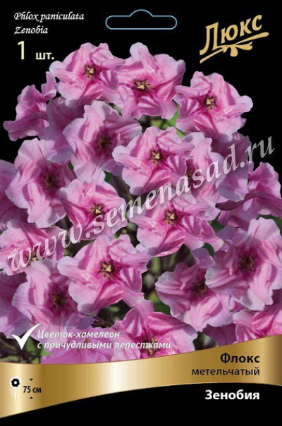 Флоксы - растения травянистые многолетние. Стебли прямостоячие, восходящие или ползучие, от 10-20см до 120-150см высотой. Листья цельнокрайные, сидячие, расположены супротивно, иногда в верхней части стебля — в очередном порядке, ланцетные, овально-ланцетные, яйцевидно-удлиненные. Цветки душистые, белые, розовые, красные, сиреневые, алые, голубые, карминовые с глазком в центре, 2,5-4см в диаметре, обычно собраны в щитковидные или метельчатые соцветия различного строения и величины, реже одиночные. Месторасположение: предпочитают солнечные, прохладные места. Не переносят жарких участков. Почва: свежая, влажная, рыхлая, богатая питательными веществами, удобренная навозом. Цветение: июнь- сентябрь. Размножение: делением кустом либо стеблевыми черенками весной. Использование: в освещенных солнцем цветниках. Зенобия - ХАМЕЛЕОН, цвет изменяется от бледно-розового, почти белого, до насыщенно-розового; оригинальная форма цветка - на разных этапах цветения лепестки заворачиваются и отгибаются, долгоцветущий. Похожие товары