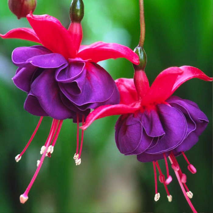 Очень нарядный и яркий сорт. Компактная фуксия с многочисленными махровыми цветами. Листья зубчатые по краю, зелёные. Чашелистики насыщенно-красные, юбочка яркая сине-фиолетовая, со временем светлеет до синего тона. Один из лучших ампельных сортов для выращивания в подвесных корзинах и кашпо. Может быть использована для декорирования домов, балконов, террас. Высота растения достигает 15-25 сантиметров. Фуксия не любит палящих солнечный лучей. Полив умеренный, по мере подсыхания почвы. В жару необходимо регулярное опрыскивание прохладной водой. Похожие товары