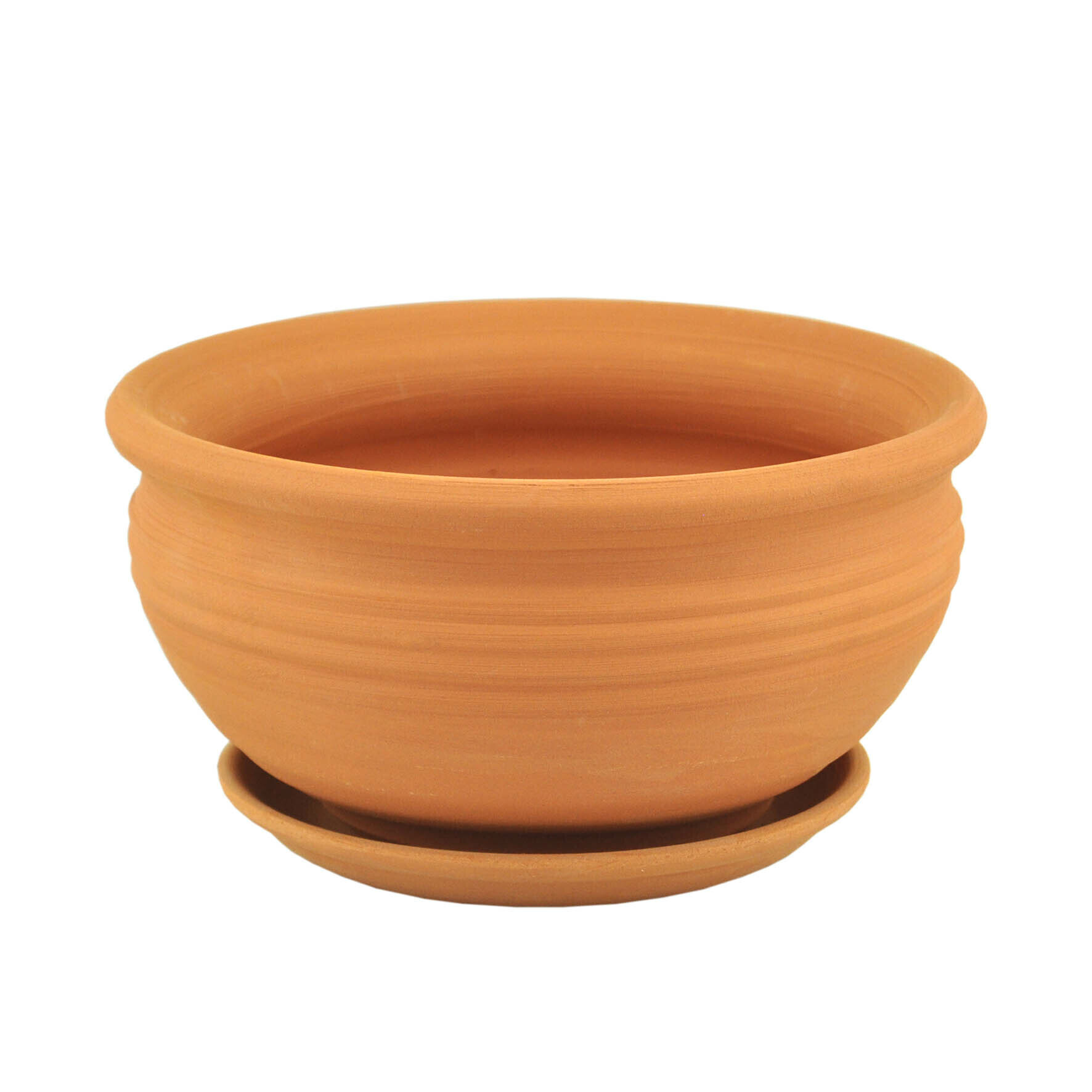 керамический горшок ручной работы с поддоном. Горшки серии "Ручная работа" - матовые, резные, сделаны из красной глины. Глина является материалом природного происхождения. Горшки этой серии имеют размеры от самого маленького (15-17см) до самого большого (50-55см), что позволяет подобрать горшок под любое растение. Керамика тяжелая, устойчивая, можно использовать для декора на улице. Похожие товары