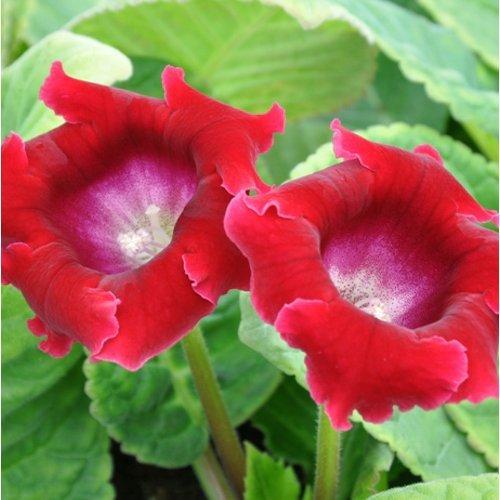 Многолетнее травянистое комнатное растение, высотой 25 см. Куст компактный. Цветок колокольчиковидный, ярко-красный с небольшим белым кантом и гофрированным краем лепестков, диаметром 8-10 см. Листья широкие, сочные, опушенные, темно-зеленого цвета. Цветение обильное и продолжительное с мая по сентябрь. Выращивается в качестве комнатного растения. Предпочитает освещенные, но защищенные от прямых лучей солнца места. Полив регулярный и обильный под корень, необходимо избегать попадания воды на клубни, листья и цветки. После того как листья отмирают, растение впадает в период покоя. Клубень выкапывают и хранят в сухом торфе при температуре 12-17С до посадки. Высаживают клубни глоксинии в феврале-марте, в легкую и рыхлую почву на глубину 1-2 см. Размножают семенами, черенками и делением клубня. Похожие товары